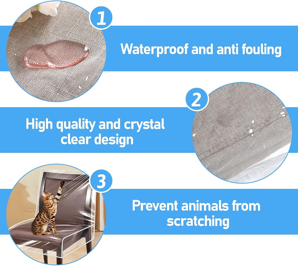 • 【PREMIUM PROTECTION】Our plastic chair covers are made of thick, high-quality vinyl that is scratch-resistant and durable. They provide invisible protection while keeping your chairs safe from spills, dust, pet hair and scratches.