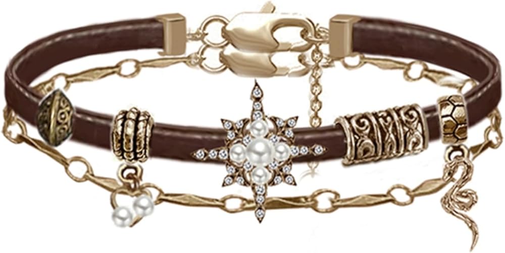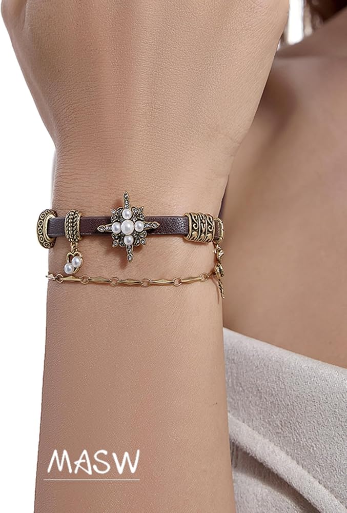 أساور نسائية على الطراز القديم أساور جلدية عصرية على شكل نجمة لإكسسوارات نسائية قابلة للتكديس M2593