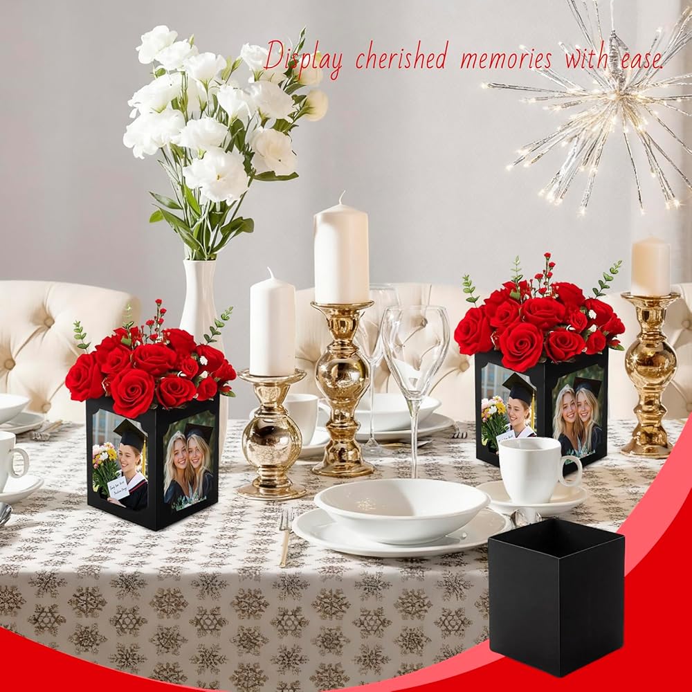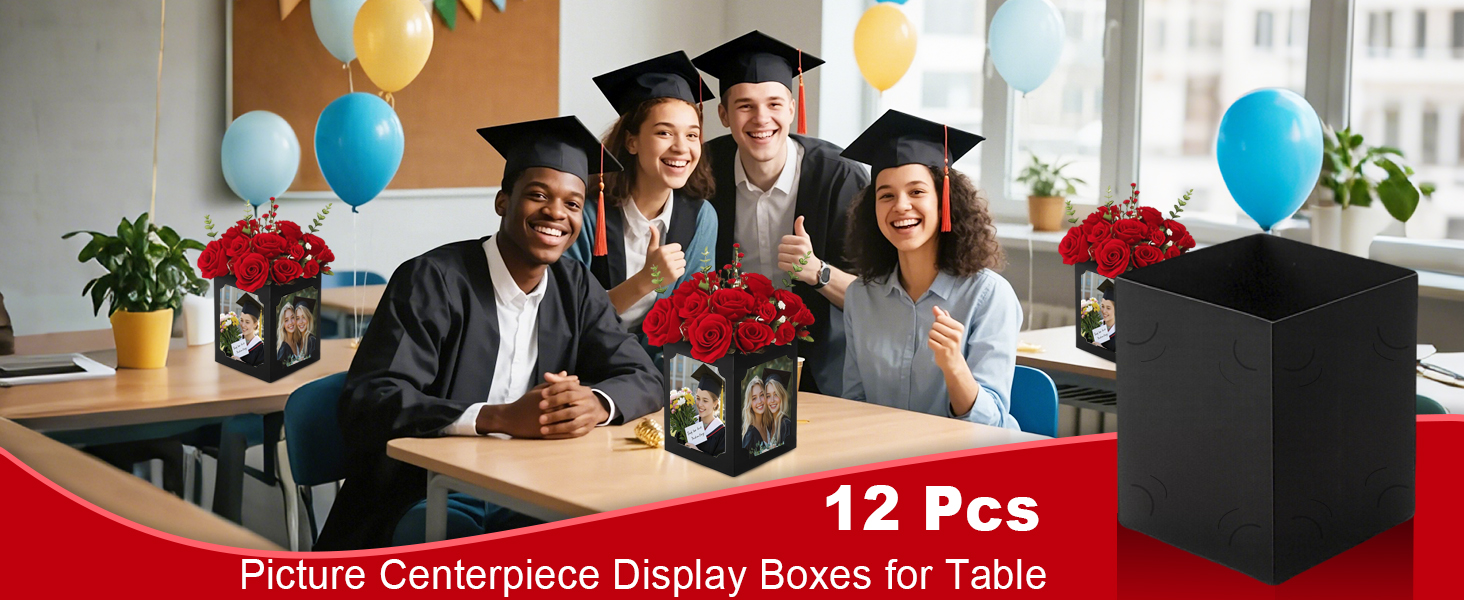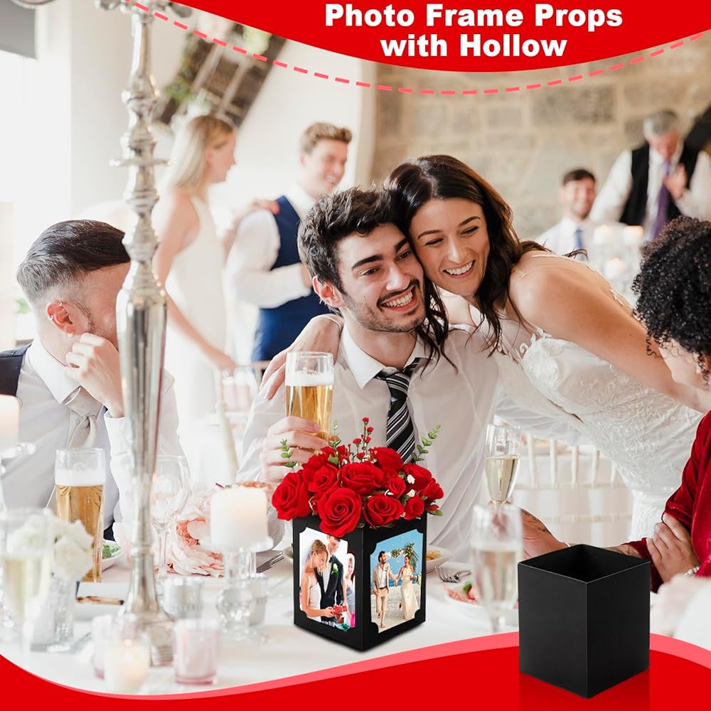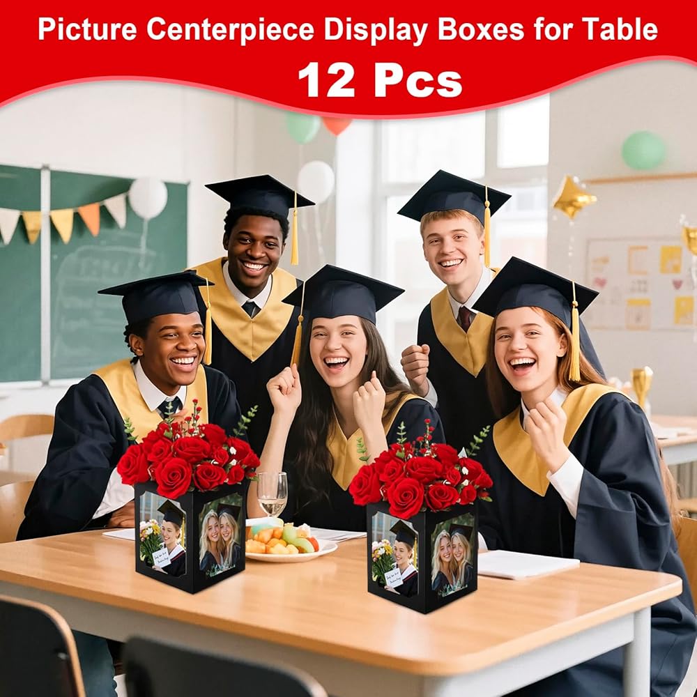 12 قطعة من صناديق عرض الصور المركزية للطاولة، دعامات إطار صور مقاس 6/7 بوصة مع تصميم مجوف للتخرج، وحفلات الزفاف، وأعياد الميلاد، وديكورات طاولات الحفلات، وإطارات سوداء قابلة لإعادة الاستخدام