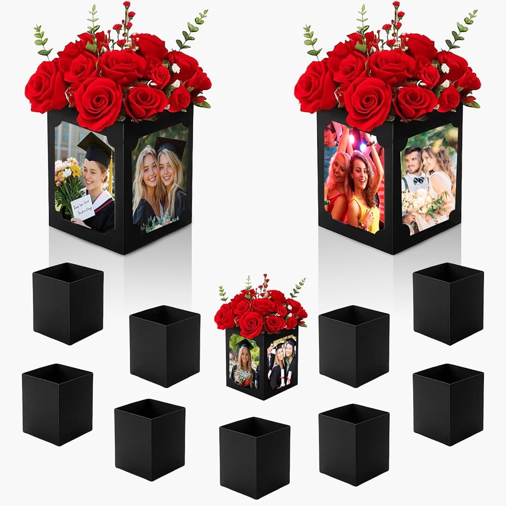 📏 حجم مثالي وحزمة قيمة: سوف تحصل على 12 صندوق صور أسود - يبلغ مقاس كل منها تقريبًا 7 × 7 × 9 بوصات، وهي مناسبة لمعظم أحجام الصور وكبيرة بما يكفي للمحتويات الزخرفية. كافية لتغطية الطاولة بالكامل!