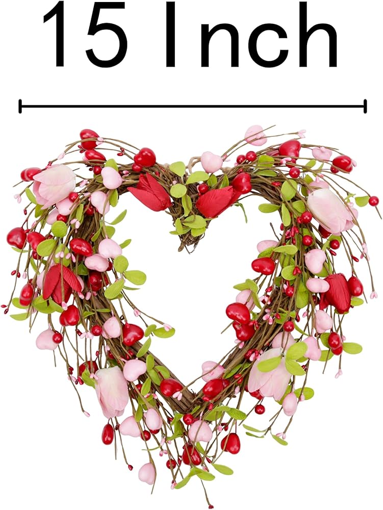 ❤Versatile Decor --This romantic Valentine day wreath is an ideal choice for Valentine's Day, weddings, anniversaries, Mother's Day, Ideal for front door spring decoration. This Valentines Day wreath also serves as a beautiful accent for parties and romantic candlelight dinners.