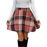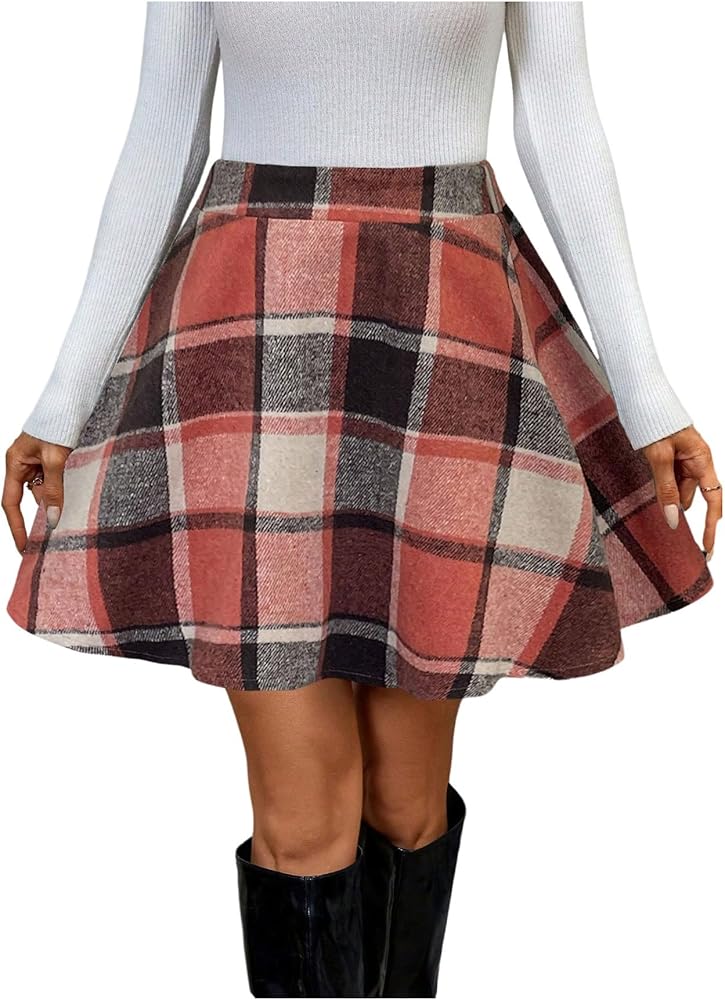 • Features: Women's plaid skirts, high waisted, elastic waist cinching, flared hem, above knee length, casual mini skirt for women