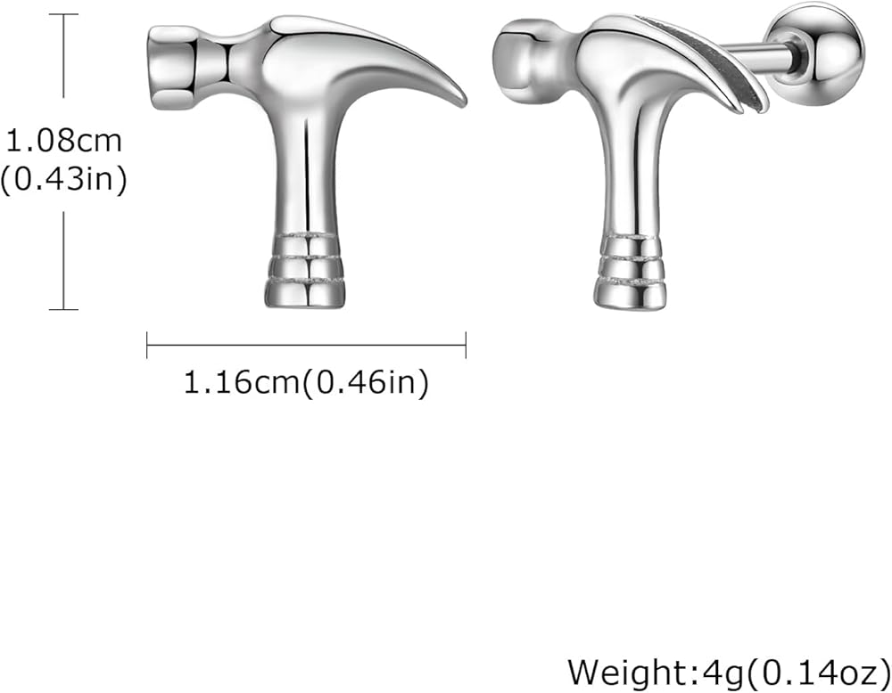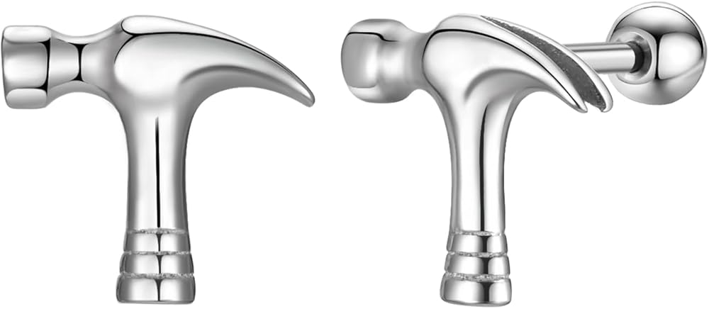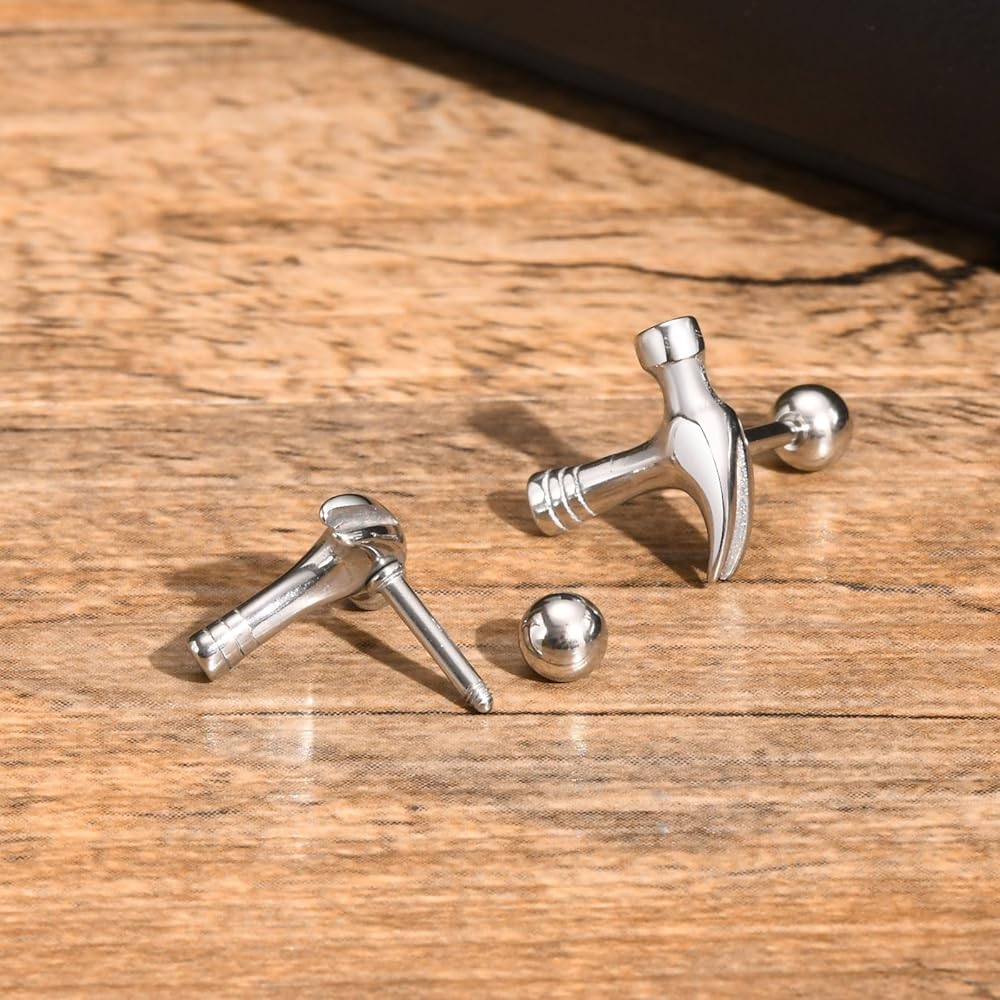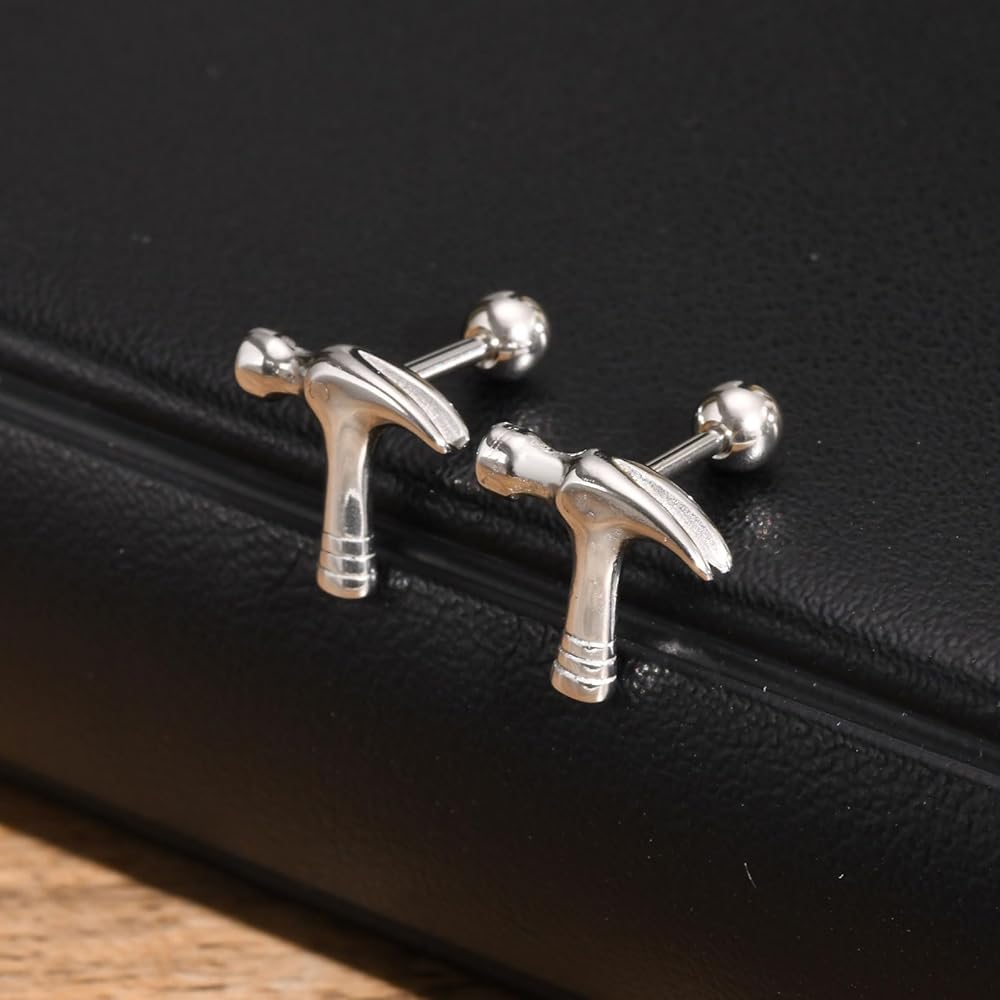 Hammer Tool Design: Featuring a creative hammer motif, these earrings offer a cool, industrial aesthetic that symbolizes strength and skill.