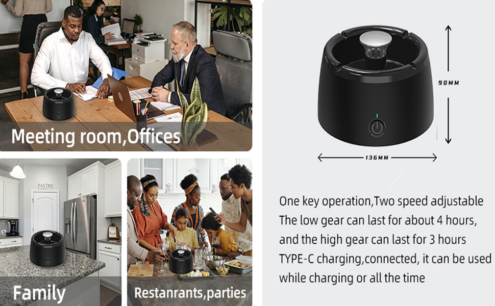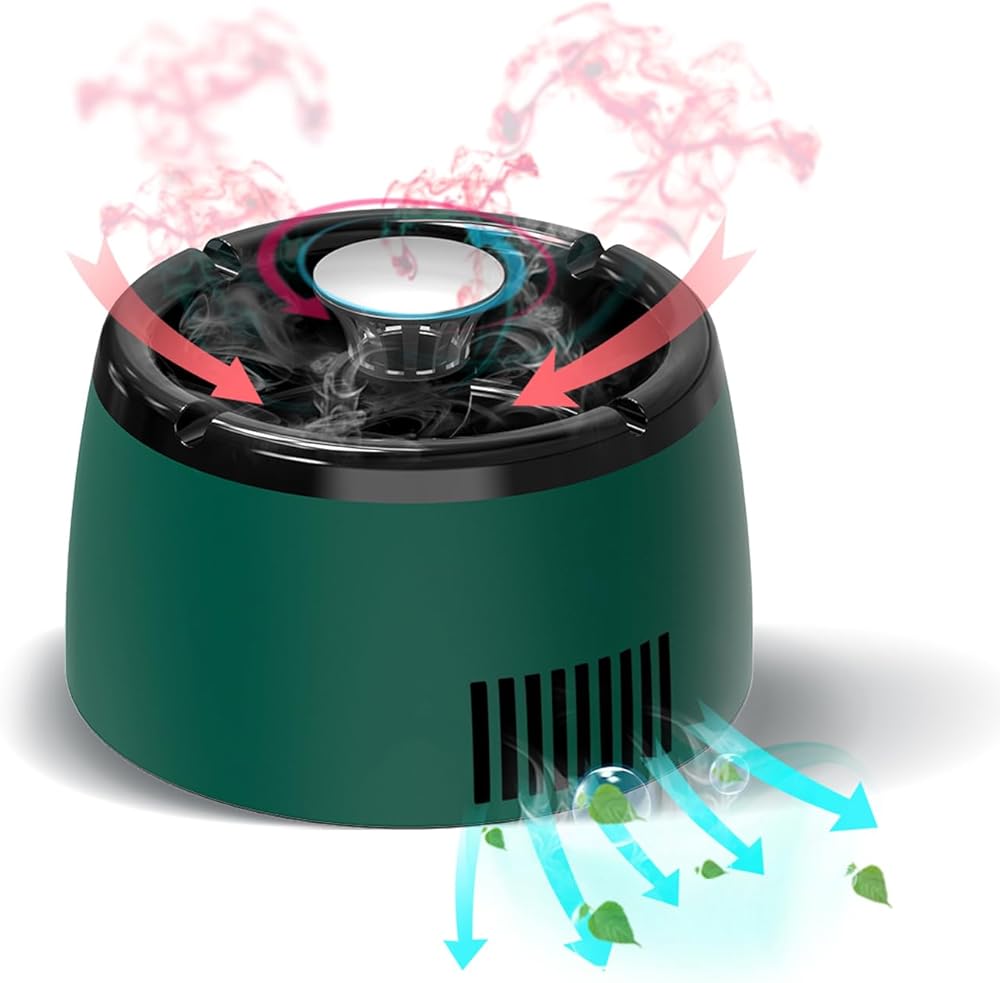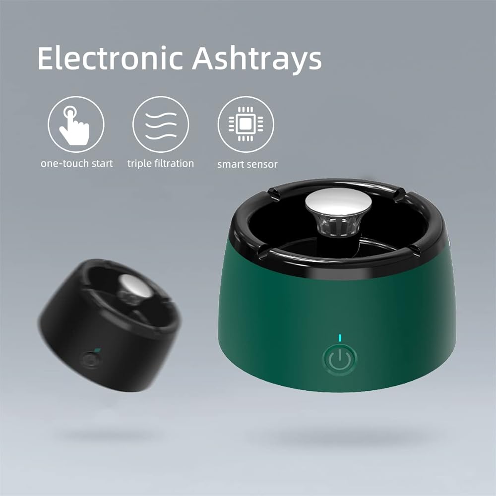 【تقنية ترشيح معززة】باستخدام نظام ترشيح متقدم، تمتص منفضة السجائر الدخان بشكل فعال وتزيل الروائح. مزودة بمروحة مدمجة، فهي تخلق شفطًا لسحب الدخان، مما يوفر خيارين للسرعة لأداء مخصص في المساحات الصغيرة.