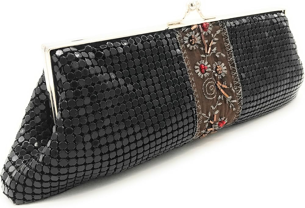 تصميم كلاسيكي أنيق - محفظة كلاسيكية شبكية معدنية مع زخارف معقدة، مثالية لحفلات الزفاف، وحفلات الكوكتيل، والحفلات الراقصة، والمناسبات الرسمية