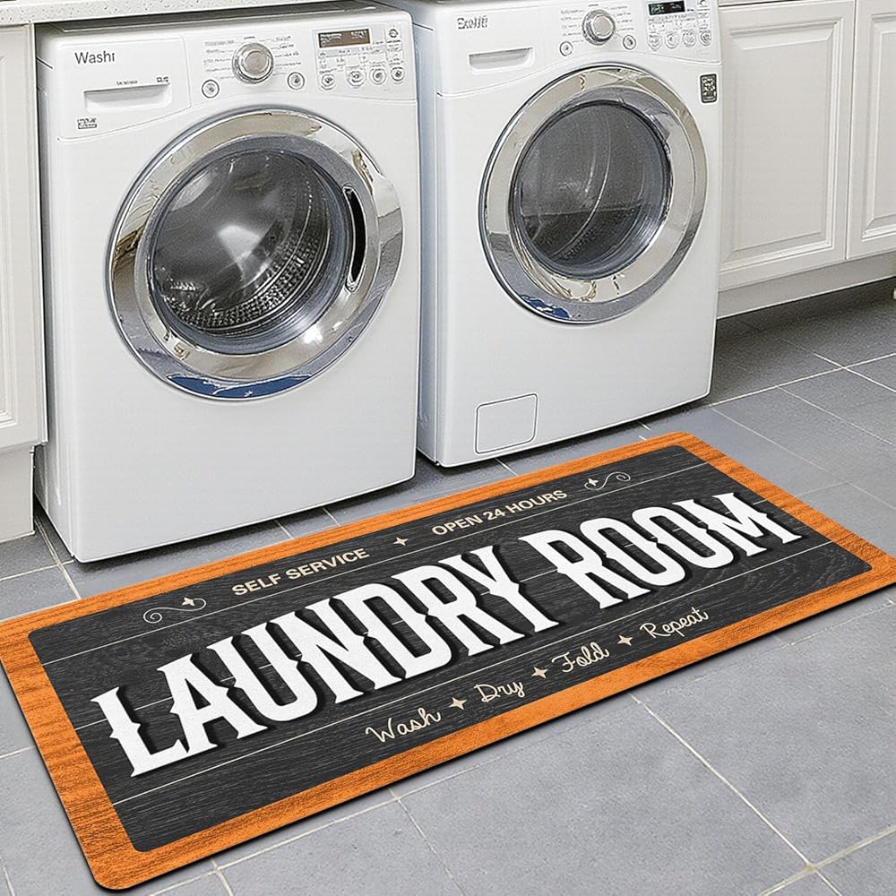 Laundry Room Decor: Our laundry room rugs have unique vintage designs and rich color schemes.cute washing machine patterns and humored text, will make your dull laundry room full of life.