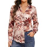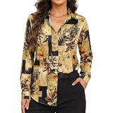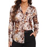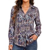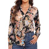 【تصميم عصري】تظهر هذه البلوزة المطبوعة نمطًا مذهلاً مع ياقة كلاسيكية وأزرار سفلية من الأمام. يمكن طي الأكمام الطويلة للحصول على مظهر أكثر استرخاء، بينما تضيف الحاشية المنحنية قليلاً لمسة عصرية. إنه يوفر تصميمًا أنيقًا ومحيطًا يبرز الشكل مع ضمان سهولة الحركة.