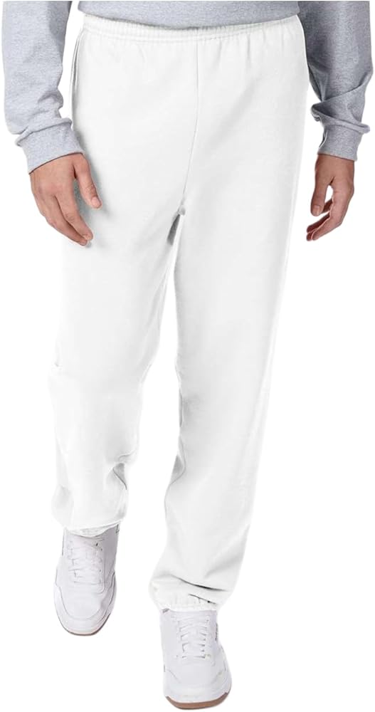 بنطال رياضي رجالي من Hanes EcoSmart - بنطال رياضي مصنوع من مزيج القطن مع جيوب، ملصق قابل للتمزيق، نسيج مقاوم للحبوب، مادة معاد تدويرها صديقة للبيئة، مقاس كلاسيكي، رباط قابل للتعديل أبيض