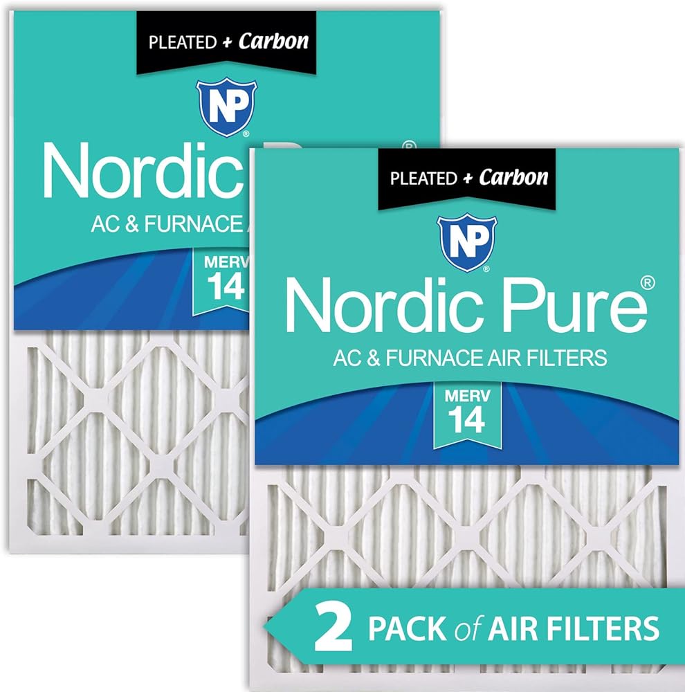 Nordic Pure 12x24x1 MERV 14 مطوي بالإضافة إلى مرشحات هواء فرن التيار المتردد الكربوني 2 حزمة وFiltrete 20x30x1 فلتر هواء، MPR 2800، MERV 14، حياة صحية لتقليل الجسيمات فائقة الدقة لمدة 3 أشهر مطوي