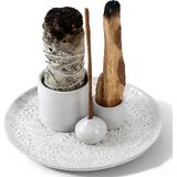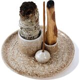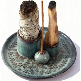 【سهل التنظيف】يجمع حامل البخور هذا، المصنوع من السيراميك عالي الجودة، بين مقاومة الحرارة وسهولة التنظيف والجمال الجميل. يمكنك ببساطة مسح الرماد باستخدام فرش الهدايا المضمنة في العبوة. تتيح لك الملاقط الإضافية رفع بقايا بالو سانتو أو المريمية دون حروق أو فوضى.