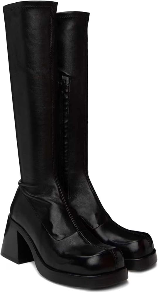 - أحذية عالية للركبة للنساء: منصة 1.5 بوصة تقريبًا + كعب مكتنز 2.75 بوصة) مع ثبات لا يتزعزع - الرقص طوال الليل دون التذبذب