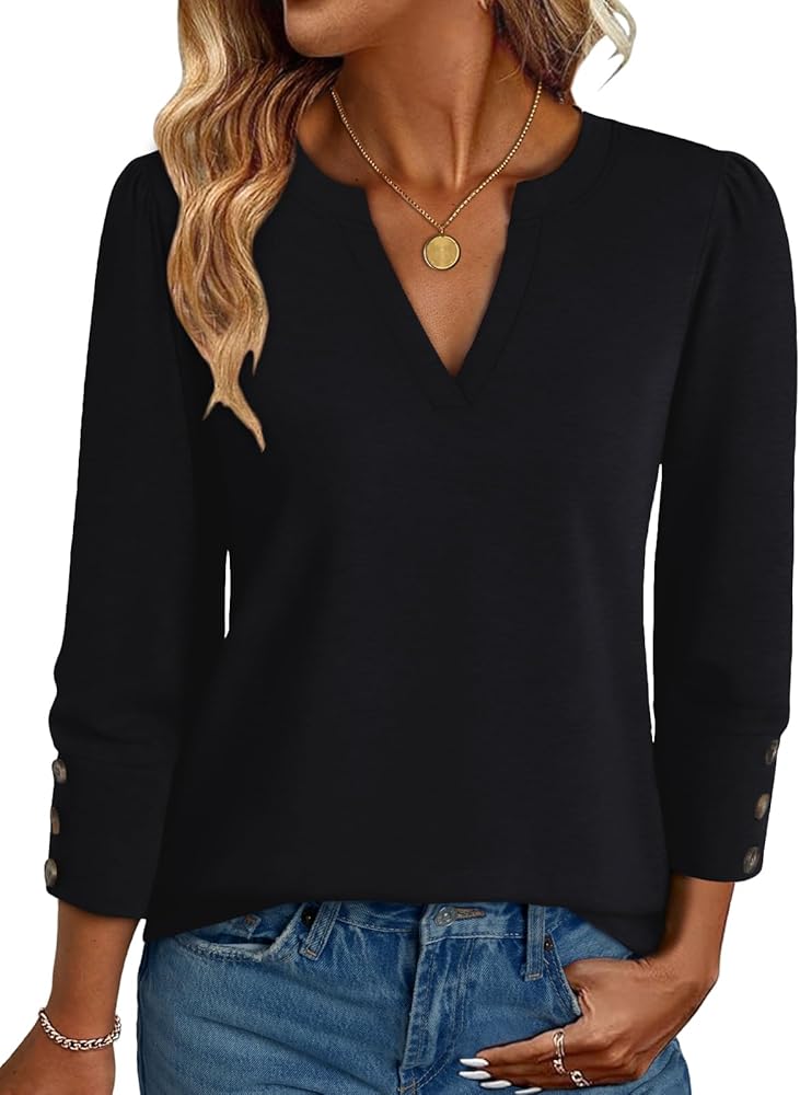 التصميمات: تتميز هذه القمصان النسائية ذات الأكمام الطويلة 3/4 بأكمام منتفخة أنيقة مع ثلاثة أزرار مزخرفة. تجعل الرقبة على شكل حرف V متعددة الاستخدامات والحاشية المنحنية هذه الملابس الصيفية للنساء أنيقة عالميًا. مثالي كبلوزات لملابس الربيع أو الصيف للسيدات، القميص ذو الأكمام 3/4 يوفر الأناقة لكل مناسبة.