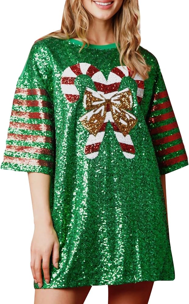 المناسبات: استعدي لموسم الأعياد مع فستان قصير على شكل تي شيرت احتفالي مزين بالترتر اللامع على شكل إكليل حلوى عيد الميلاد. توفر هذه الشقوق الجانبية المرتفعة والمنخفضة مقاسًا فضفاضًا مريحًا وأنيقًا. مثالي لحفلات أعياد الميلاد، والعام الجديد، والعطلات، والمهرجانات، وحفلات العودة إلى الوطن، وحفلات الكوكتيل، والسهرات، والرسمية، وفستان حفلات الديسكو، وفساتين الحفلات، والفساتين، والنوادي والسهرات، والحفلات الموسيقية، والكاجوال، والمواعدة، والعروض المسرحية، والعطلات، والرقص، والملابس، وملابس الشارع، والارتداء اليومي، إلخ