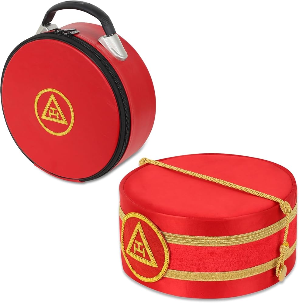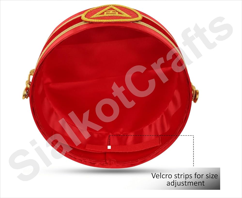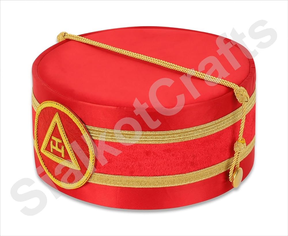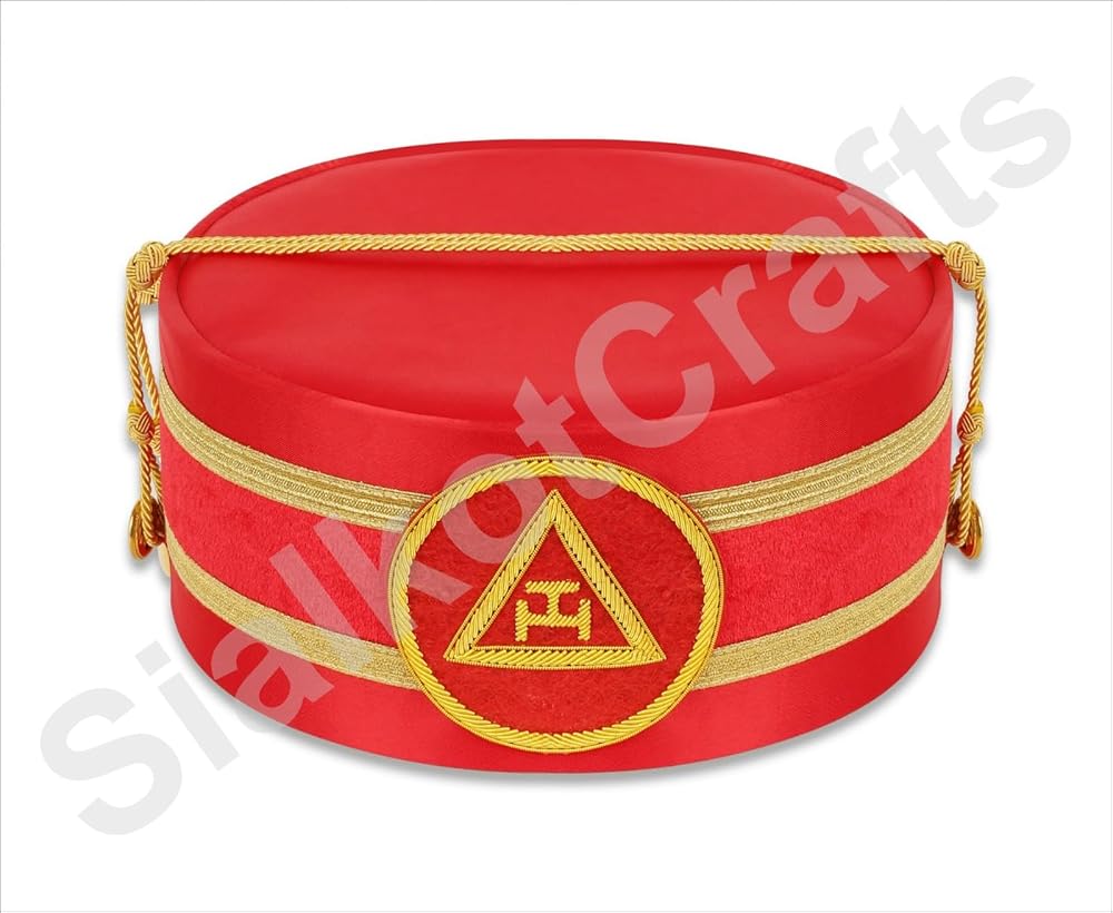 Elevate your Masonic regalia with this Masonic Royal Arch Premium Triple Tau Crown Cap, expertly hand-embroidered with shimmering bullion threads that highlight the iconic Triple Tau symbol. Crafted with meticulous detail, this crown cap radiates elegance and respect for Masonic traditions. Thanks to its adjustable design, this cap offers a universal fit, ensuring comfort for any wearer. Included is a luxurious hand-embroidered leather case, providing both protection and a touch of sophistication when storing or transporting your regalia. Whether for your own ceremonial use or as a thoughtful gift for a fellow Royal Arch Mason, this premium crown cap embodies the pride, symbolism, and heritage of Freemasonry. Invest in quality regalia that reflects your commitment and dedication to the craft.