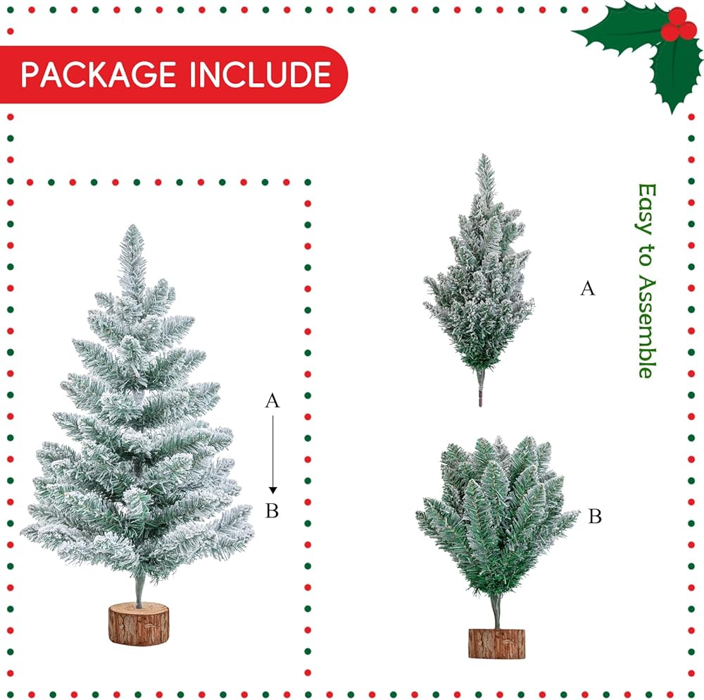 HIGH QUALITY MATERIAL: The snow flocked Christmas tree is made of high quality PVC material, sturdy and not fade, and looks dense and realistic. And the base of tree is made of sturdy wood that can support trees well and prevent them from tilting or falling down