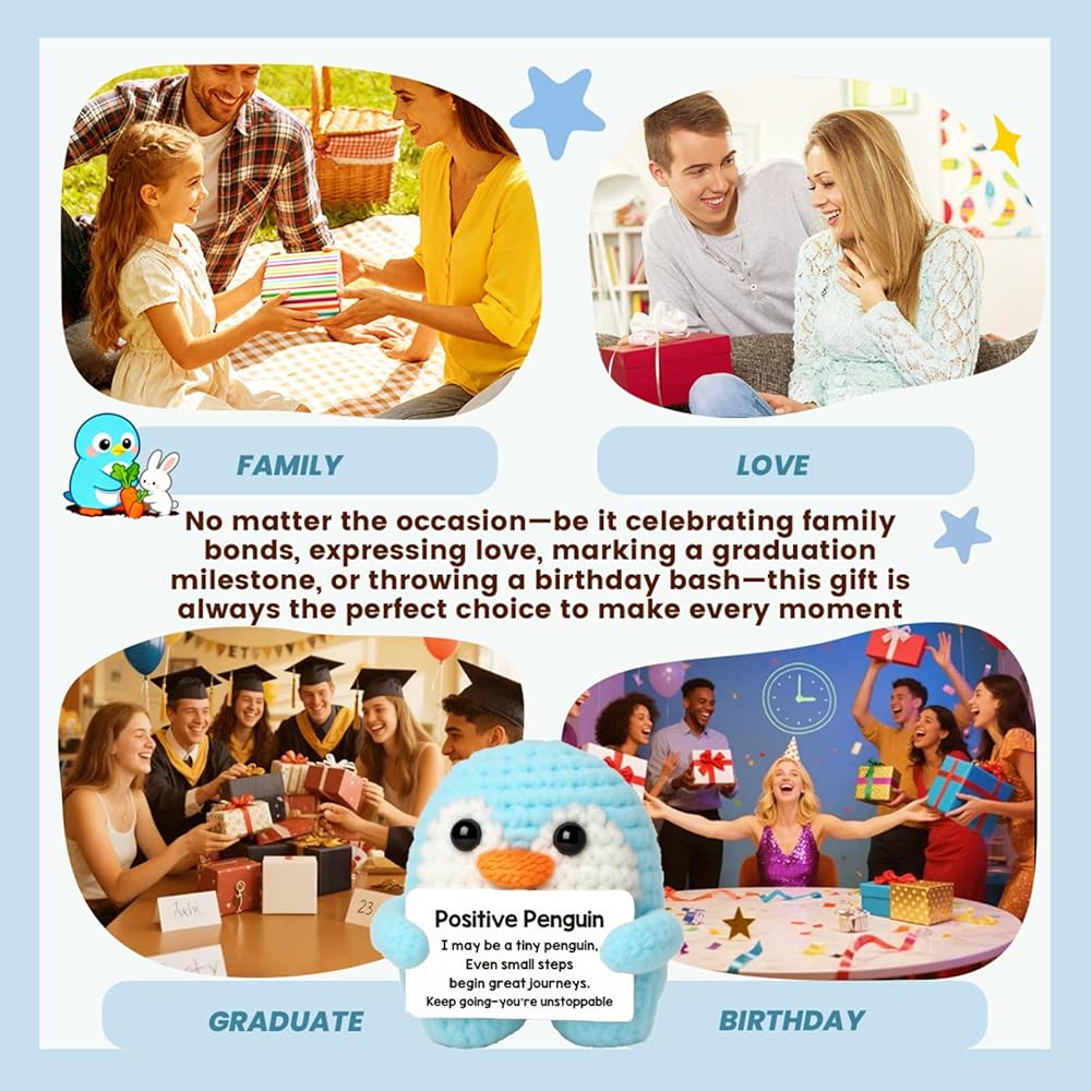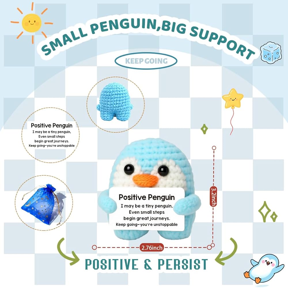 • 【حقيبة هدايا رائعة】مصنوعة يدويًا بحب وإيجابية: يتم حياكة كل بطريق إيجابي يدويًا بدقة، ويتم غرسه بعناية لجلب جرعة من التشجيع. مع حقيبة الأورجانزا الرقيقة، فهي جاهزة للإهداء أو الاحتفاظ بها كرفيق لطيف ومبهج.