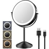 مرآة مكياج مضاءة مقاس 8 بوصات من بينبيلري مع 3 أضواء خافتة للضوء، مرآة مستحضرات تجميل قابلة لإعادة الشحن ومكبرة 1X/10X، قابلة لإعادة الشحن على الوجهين، حامل لاسلكي دوار 360 درجة، أسود
