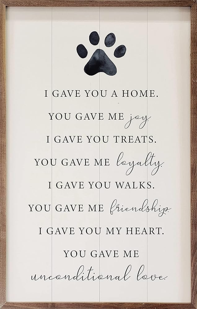 Introducing the "I Gave You A Home Paw White Hardwood" by Kendrick Home, a heartfelt tribute to your beloved pet who brought joy, loyalty, and unconditional love into your life. This dog memorial gift is crafted from high-quality American hardwood planks, ensuring durability and a touch of natural elegance. The hand-painted face and vibrant designs, printed using UV cured ink, make this piece a standout addition to any wall or shelf.
