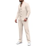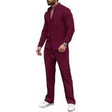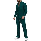 Men's two-piece sports suit - add a touch of brightness to your wardrobe. This men's two-piece long sleeved shirt and pants set can be paired with sneakers or sandals to create a fashionable and trendy look. A contrasting long sleeved shirt can be paired with a white T-shirt, shorts, pants, or jeans. Loose solid colored pants can be paired with any top, shirt, or vest. A simple and classic shirt and pants set, showcasing a relaxed and relaxed attitude towards life.