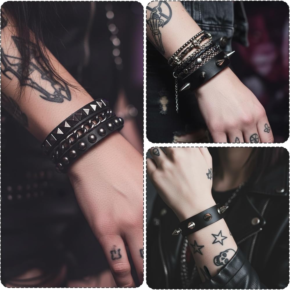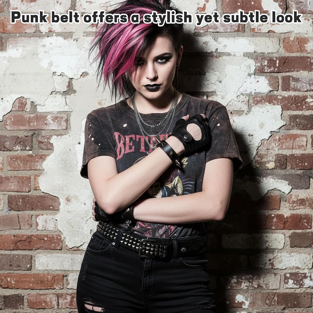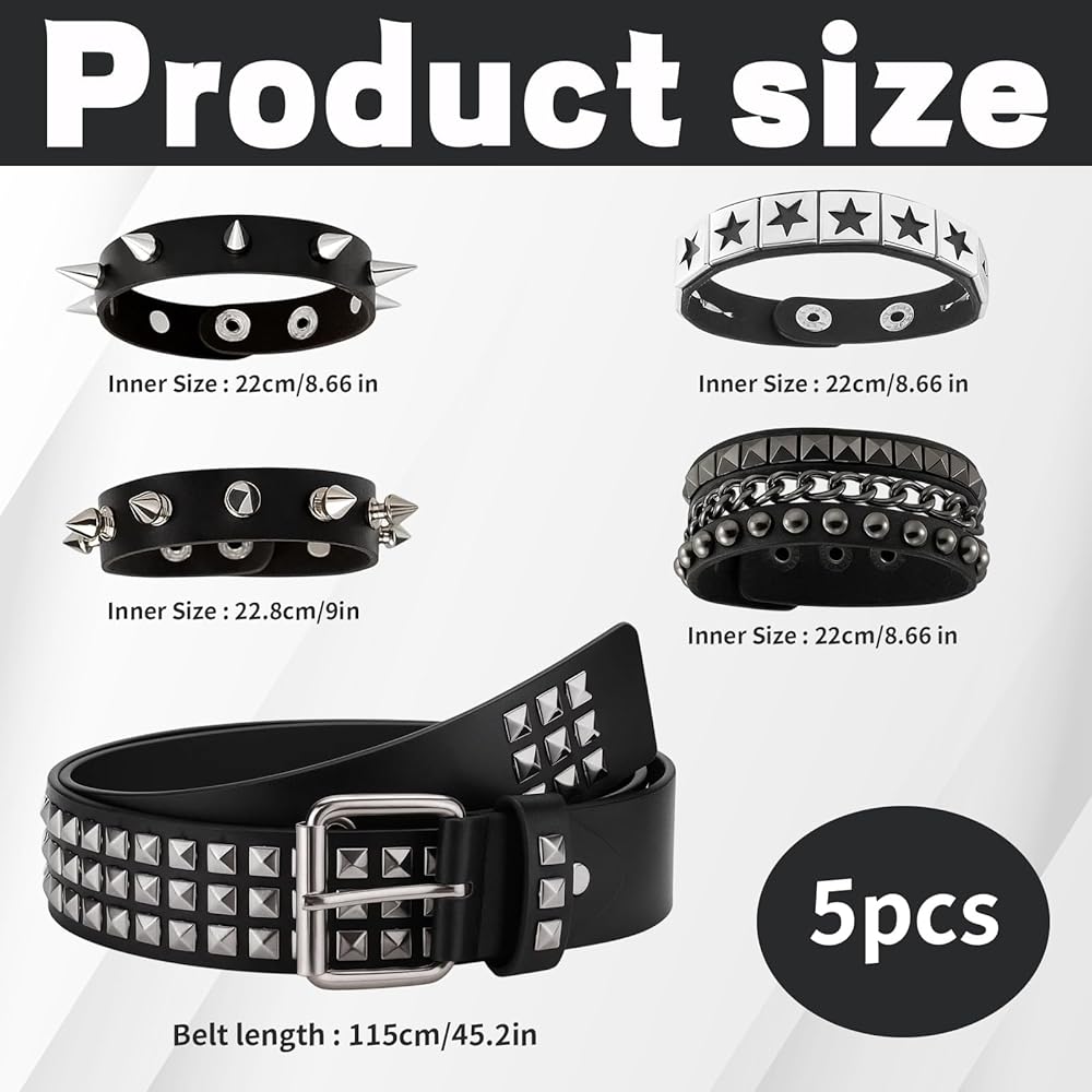 Edgy Style for Any Occasion: The studded belts and bracelets set enhances casual, concert, or festival outfits; Express your unique personality with this standout punk accessory collection; A must-have for fans of alternative fashion trends