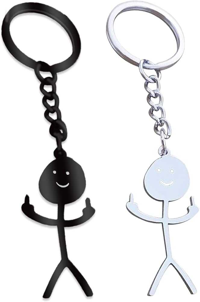 Askyorte Stainless Steel Funny Doodle Keychain Middle Finger Pendant