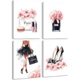 ديكور فاخر أنيق - ارفع غرفة نومك أو حمامك أو مسكنك مع لوحة فنية جدارية أنيقة ذات طابع أنيق باللون الوردي تتميز بالعطور وحقائب اليد والكعب العالي - مثالية للمساحات الأنيقة للفتيات. ستكون مثالية لديكور غرفة فتياتك المحبوبات.