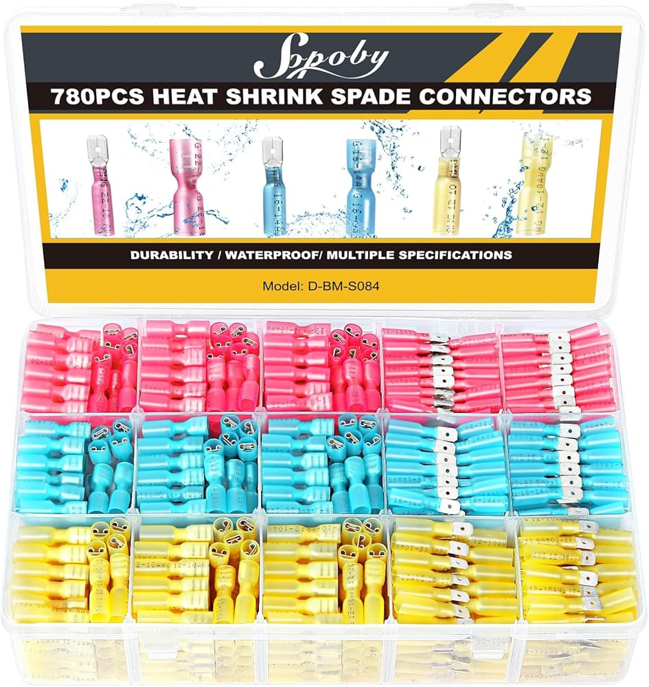 مجموعة موصلات 780 قطعة من Sopoby - مجموعة موصلات أسلاك مجرفة للذكور والإناث - موصلات طرفية كهربائية سريعة الفصل للمركبات المائية والإلكترونيات وموصلات تجعيد السيارات