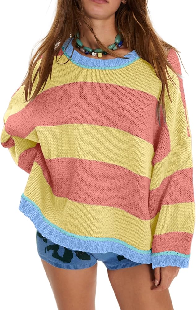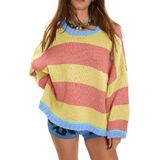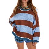 SALENT المرأة المتضخم متماسكة البلوز سترة مخطط طويل Batwing كم عادية لينة البلوز البلوزات القمم in Kuwait