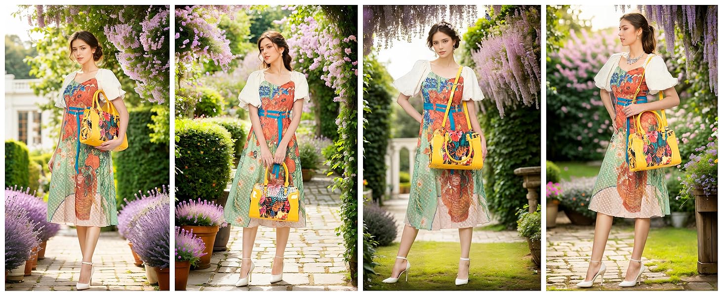 【تصميم متين】حقيبة اليد النسائية مصنوعة من جلد أصلي عالي الجودة من خلال عملية النقش. استخدم تقنية الطباعة لطباعة النمط على سطح الجلد. تم تصميم حقيبة اليد الجلدية لمقاومة التآكل والتمزق، كما أنها طاردة للماء مما يجعلها خيارًا متعدد الاستخدامات للاستخدام اليومي.