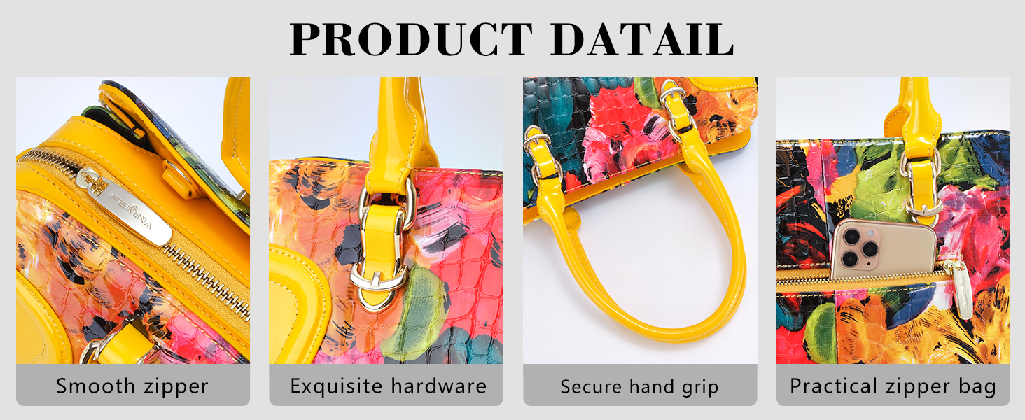 【تفاصيل رائعة】 حلقة ترقية تثبت المقبض بإحكام. تمت الخياطة بشكل جيد ولن ترى أي خيط فضفاض في أي مكان. سحابات معدنية عالية الجودة بسحاب بسلاسة، لا يوجد خطر عالق. يمكن استخدام شريط تمرير الأجهزة الذي تم اختياره بعناية بشكل دائم. بطانة من البوليستر الحريري لن تخدش متعلقاتك الشخصية.
