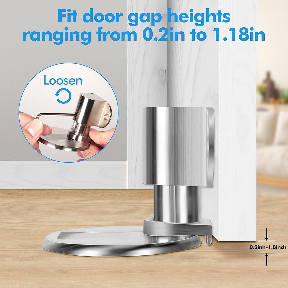 • 【يمنع انزلاق الباب】: تضمن القوة المغناطيسية القوية لتوقف الباب الخاص بنا بقاء الباب مفتوحًا بشكل آمن، مما يمنع التصادم المفاجئ بسبب تيارات الهواء أو الصدمات العرضية. وهذا لا يحمي جدرانك وأثاثك من التلف فحسب، بل يخلق أيضًا بيئة أكثر هدوءًا وسلامًا.