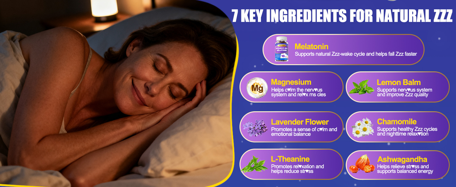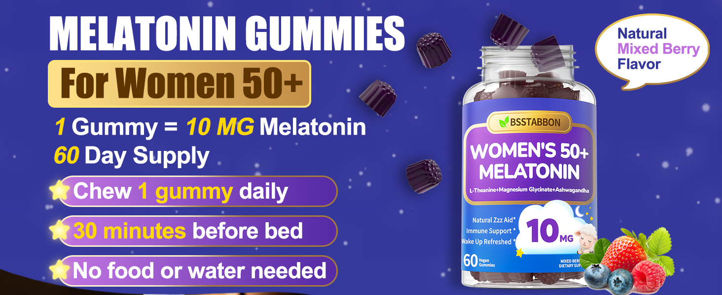 دعم متعدد للنساء فوق سن 50 عامًا: تم تصميم علكات الميلاتونين المصممة خصيصًا لدعم الصحة العامة للنساء فوق 50 عامًا، حيث تجمع الميلاتونين 10 ملجم مع العناصر الغذائية الداعمة للمناعة D3 وB6 وC والمغنيسيوم والزنك - بالإضافة إلى مزيج نباتي مستهدف (التوت البري والكركم والفلفل الأسود) يستخدم تقليديًا لدعم الحيوية والصحة العامة. تساعد هذه التركيبة الفريدة في الحفاظ على إيقاعات جسمك الطبيعية وتشجيع الشعور بالاسترخاء، حتى تستيقظ وأنت تشعر بالانتعاش والاستعداد لليوم.