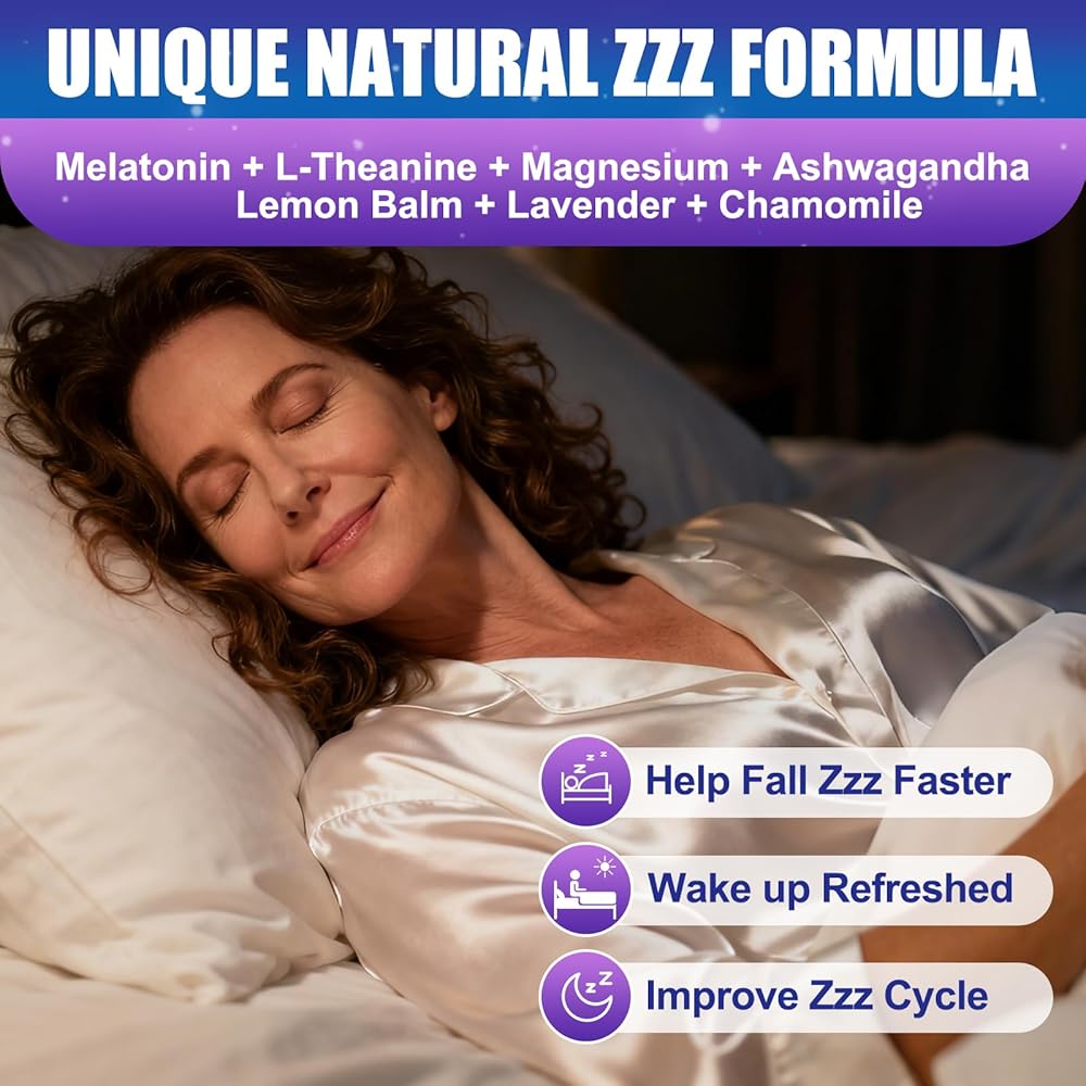 تركيبة ZZZ الفاخرة للنساء بعمر 50 عامًا فما فوق: تجمع علكة الميلاتونين لدينا بين 10 ملغ من الميلاتونين وفيتامين D3 وB6 وC والمغنيسيوم والزنك ومزيج نباتي خاص (L-theanine، أشواغاندا، بلسم الليمون، الخزامى، البابونج، البلسان، الكركم، الفلفل الأسود). تعمل هذه التركيبة المتقدمة على تعزيز الاسترخاء والراحة، خاصة للنساء فوق سن 50 عامًا اللاتي يعانين من الاستيقاظ أثناء الليل وصعوبة الرجوع إلى Zzz. يساعد المزيج غير المعتاد على سقوط Zzz بشكل أسرع والاستيقاظ منتعشًا دون الشعور بالترنح.