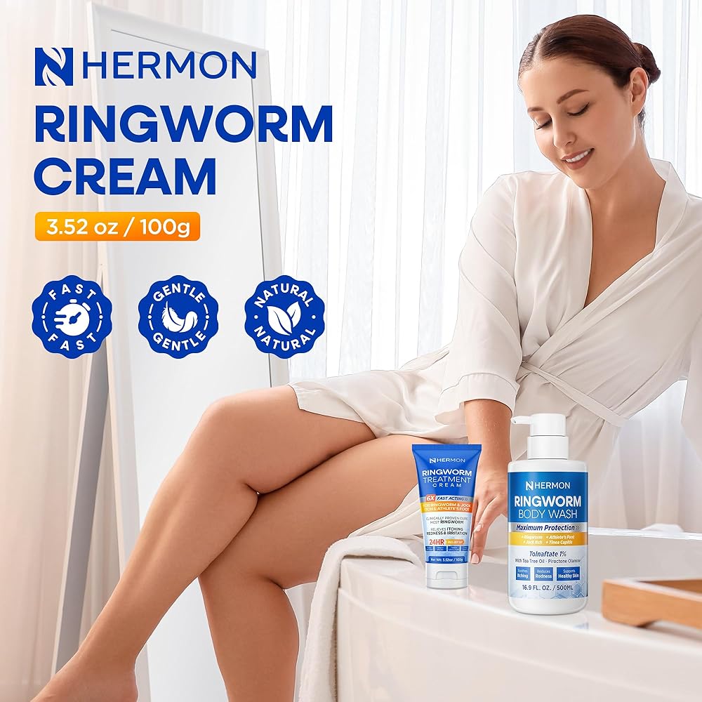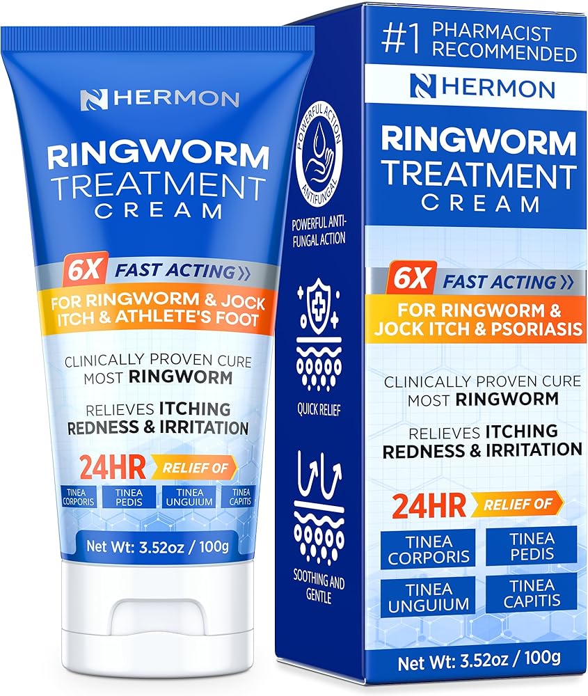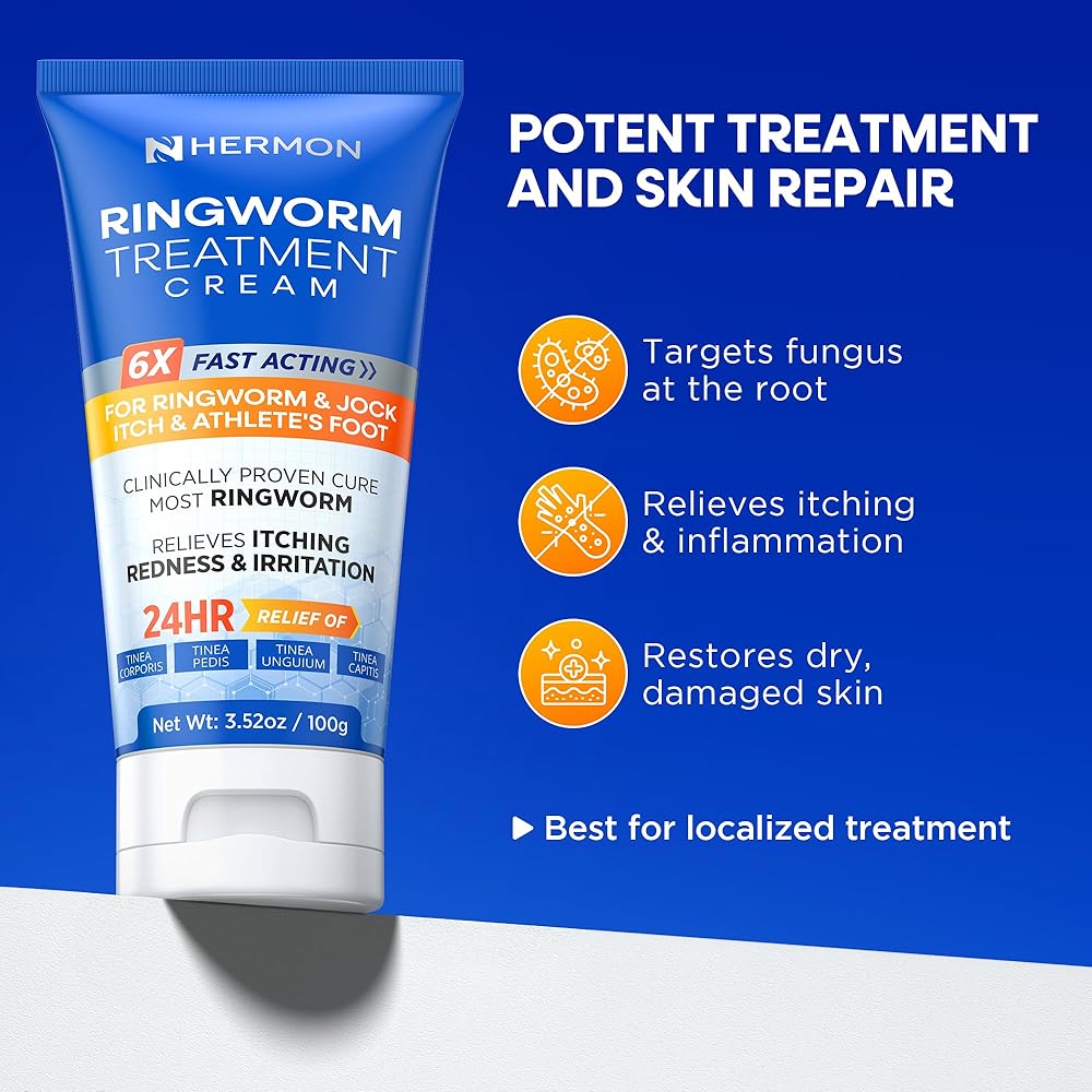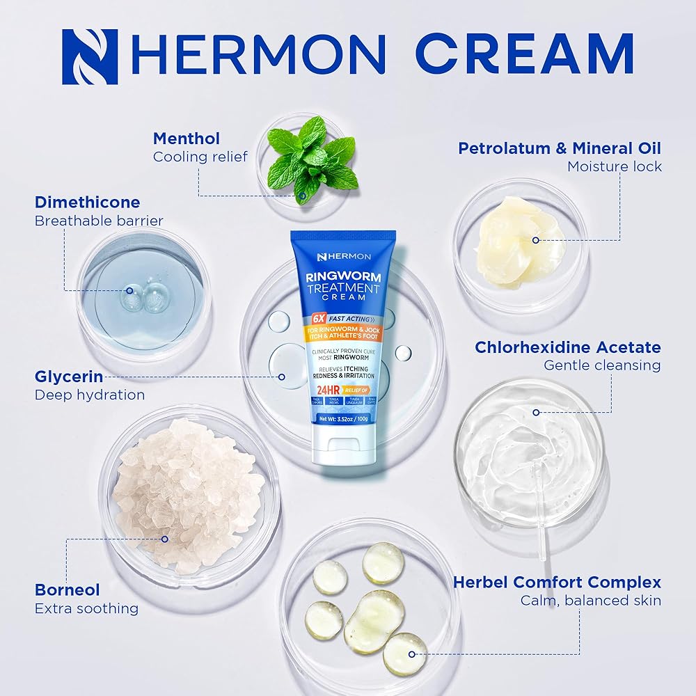 كريم هيرمون المضاد للفطريات للبشر - يساعد على تخفيف الحكة والاحمرار والانزعاج من السعفة وحكة اللعب وقدم الرياضي والسعفة المبرقشة - لطيف للبالغين والأطفال - 100 مل