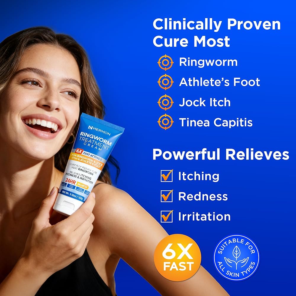 • راحة سريعة: يوفر كريم السعفة القوي للبشر راحة سريعة من السعفة العنيدة، وحكة اللعب، والأكزيما، والسعفة المبرقشة، وقدم الرياضي.