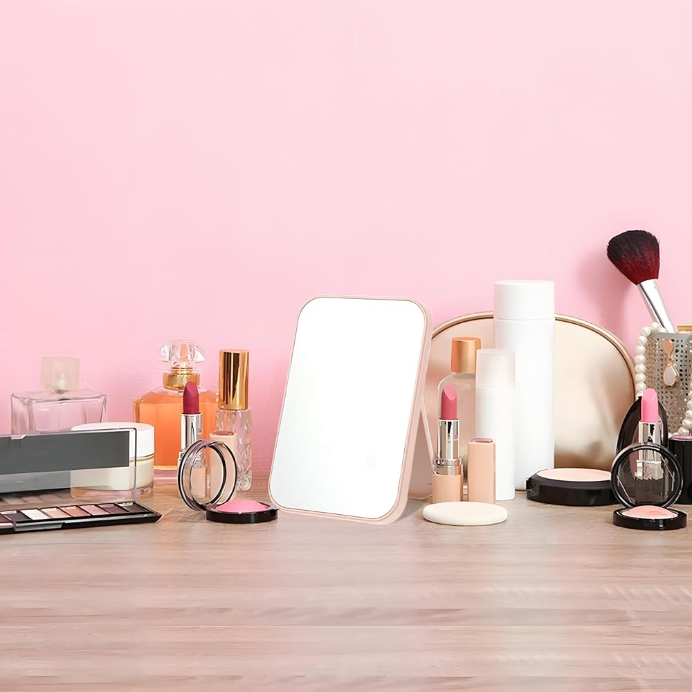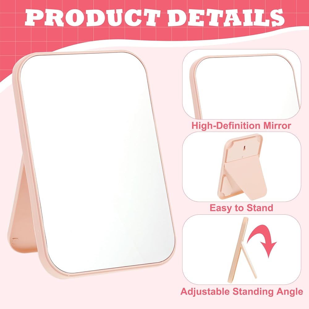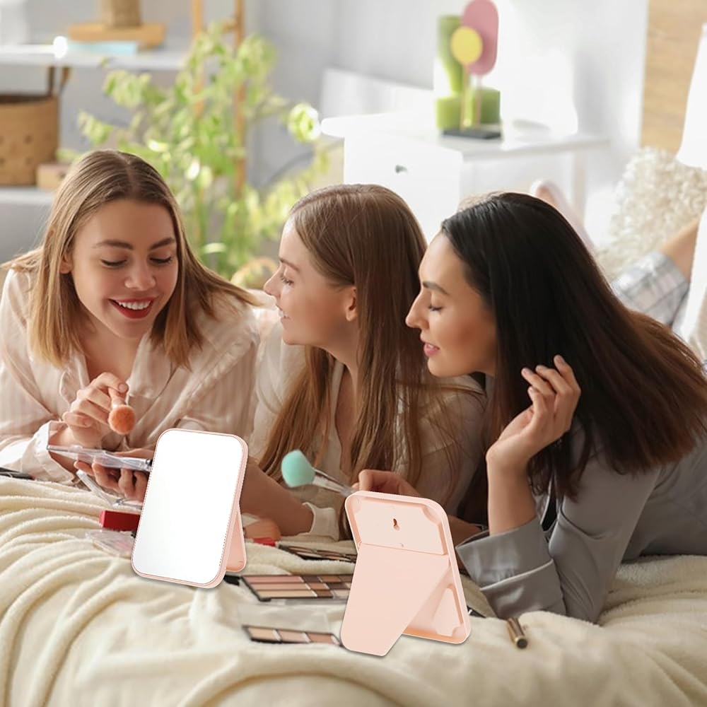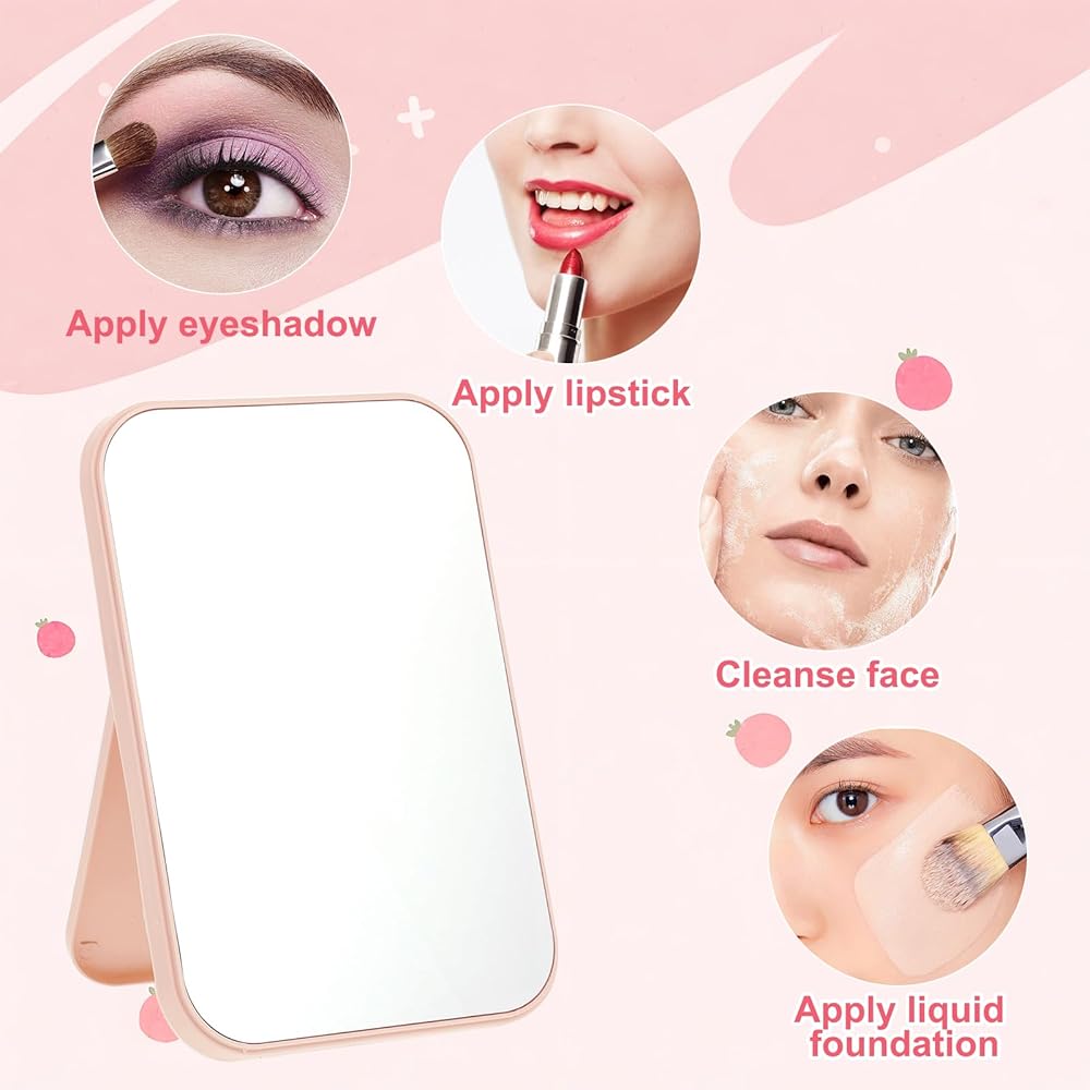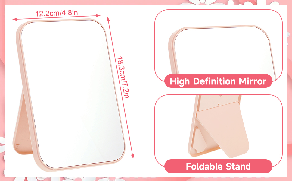 حجم صغير وقابل للحمل: يبلغ مقاس كل مرآة مكياج 7.2 × 4.8 بوصة، مصممة لتناسب بسهولة الزينة أو المكاتب أو أسطح العمل دون أن تشغل مساحة كبيرة. خفيفة الوزن ونحيفة، ويمكن أيضًا وضعها في المحافظ أو حقائب المكياج للسفر أو أثناء التنقل