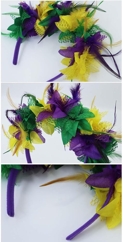 Absolutely adorable and well great purple yellow green headband is great for men women girls child kids hair decoration on Mardi Gras party, Mardi Gras parade, Brazil Carnival.