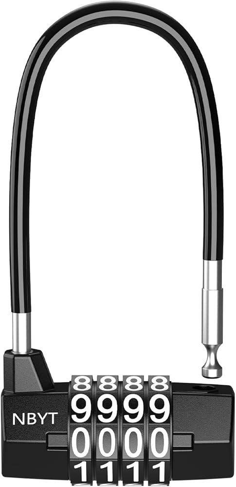 مادة القفل المركب المقاوم للماء المكون من 4 أرقام: هيكل قفل من خليط الزنك + مشبك كابل فولاذي؛ قطر المشبك: 3/16 انش
