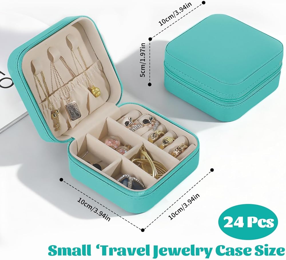 • صندوق مجوهرات للسفر مكون من 24 عبوة جاهزة لإدارة أمن المواصلات الأمريكية - مقاس راحة اليد 3.94 × 3.94 × 1.97 بوصة/ 10 × 10 × 5 سم، <3 أونصة، عقد نهاية مزلاج سريع الإغلاق في أمان المطار؛ رحلة بحرية، محمولة، عطلة نهاية الأسبوع ضرورية.