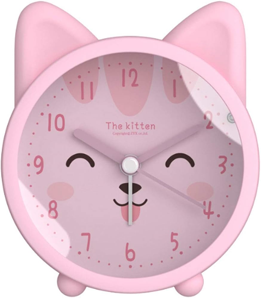 Danse Jupe 3" Kids Alarm Clock Round Silicon Analog Desk Clock Cartoon Animal Silent Non Ticking,Backlight,Battery Operated for Bedroom