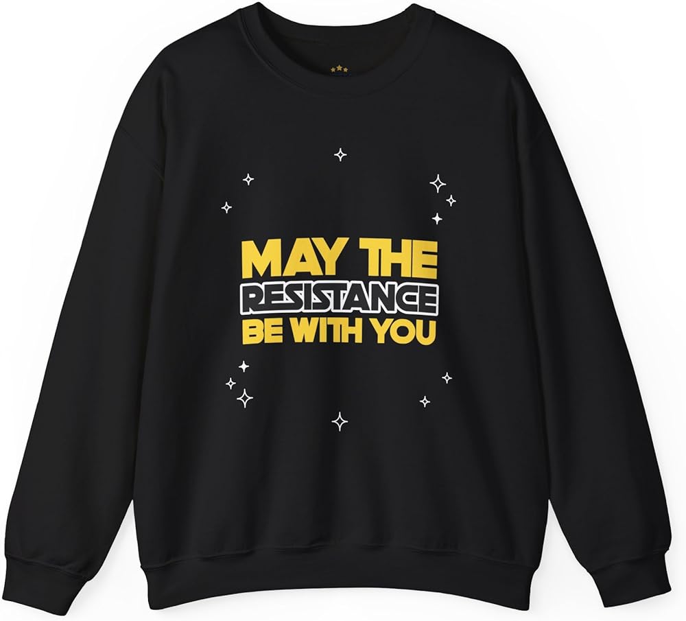 Show your support for democracy, social justice, and activism with this custom-designed sweatshirt. Featuring a unique "May the Resistance Be With You" print, this sweatshirt is perfect for anyone passionate about political movements, rallies, and social causes. Made from a soft and durable 50% cotton, 50% polyester blend, this sweatshirt offers comfort and warmth for all-day wear. Whether you're attending a political event, a social justice rally, or simply want to express your values, this sweatshirt provides both style and function. The regular fit and medium-heavy fabric (9 oz/yd²) make it ideal for year-round wear, ensuring you stay comfortable in all seasons. Manufactured by Gildan, this sweatshirt is made using ethically grown US cotton. It features a ribbed knit collar for elasticity and shape retention, and overlocked seams for added durability. The fabric is knit in one piece without side seams to reduce fabric waste, promoting sustainability. This high-quality, custom-printed sweatshirt is made and shipped in the USA. Show your commitment to freedom and equality with a garment that supports both activism and sustainable practices. Product Features: 50% cotton, 50% polyester blend for a comfortable and durable fit. Manufactured by Gildan using ethically sourced US cotton, a member of the US Cotton Trust Protocol. Ribbed knit collar and overlocked seams for elasticity and durability. No side seams for a clean, smooth fit and reduced fabric waste. Regular fit with medium-heavy fabric (9 oz/yd² / 310 g/m²), suitable for year-round wear. Custom printed design, made and shipped in the USA. Easy to care for: machine wash cold, no bleach, and low heat for ironing. Care Instructions: Machine wash: cold (max 30°C or 90°F) Do not bleach Do not tumble dry Iron, steam, or dry: low heat Do not dry clean