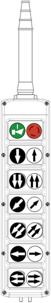 ASI PLB14-E محطة تعليق رافعة ذات 14 زر، صف مزدوج، 12 زر ضغط ثنائي الاتجاه، 6 سرعتين، 1 زر إنذار، 1 توقف للطوارئ، 1NC/20 لا توجد اتصالات