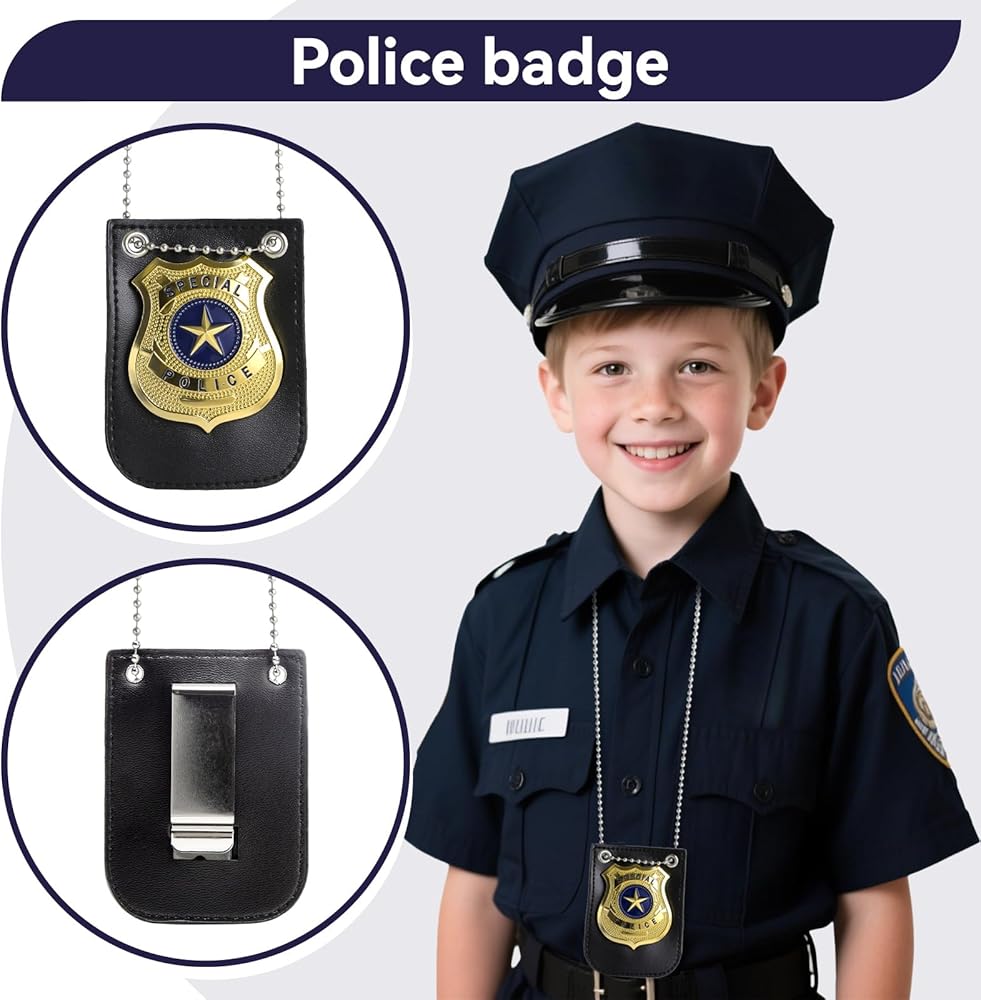 هدية مثالية للهالوين والكريسماس: سواء كانت هدايا الهالوين أو هدايا الكريسماس، فإن مجموعة الشرطة هذه ممتعة للجميع! شارة ضابط الشرطة الممتازة والأصفاد مناسبة للحفلات ذات الطابع الخاص.