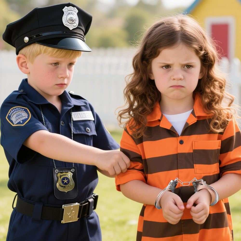 تشمل العبوة: تتضمن المجموعة قلادة شارة الشرطة مع حامل من الجلد الصناعي وسلسلة معدنية لمظهر واقعي، وأساور يد مزيفة مع إطلاق أمان وصفارات.