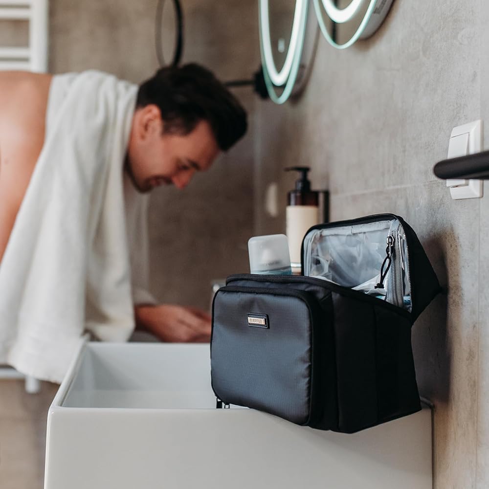 • متعددة الاستخدامات وعملية: تم تصميم حقيبة أدوات الزينة للسفر هذه لكل من الرجال والنساء؛ تعمل كحقيبة أدوات الزينة، وحقيبة المكياج، وأدوات الحلاقة، ومنظم مستحضرات التجميل، مما يوفر حلاً مريحًا ومتكاملاً.