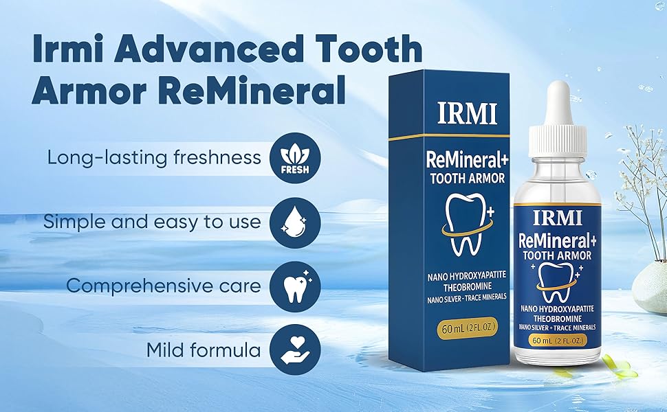【تركيبة آمنة ولطيفة وخالية من الفلورايد】 سائل درع الأسنان هذا خالٍ من الفلورايد والكحول - مثالي للبالغين ذوي الأسنان أو اللثة الحساسة. تم تصنيع Irmi Remineral من مكونات نظيفة ومدعومة علميًا يمكنك الوثوق بها لحماية المينا اليومية