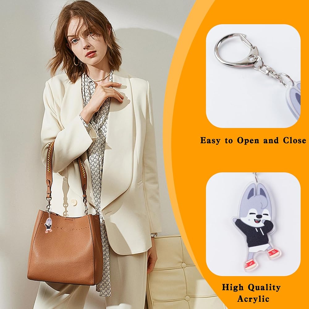 Material: The cartoon keychain is made of acrylic material, with clear and delicate patterns that are not easily faded even after long-term use. Paired with a silver round buckle, it is easy and convenient to use.
