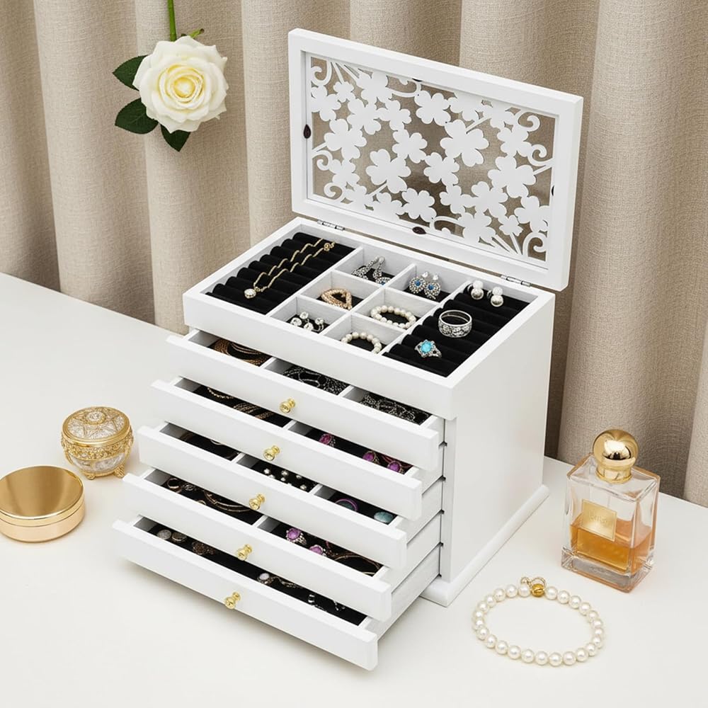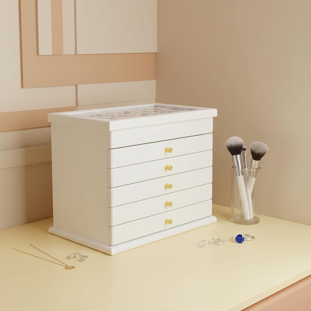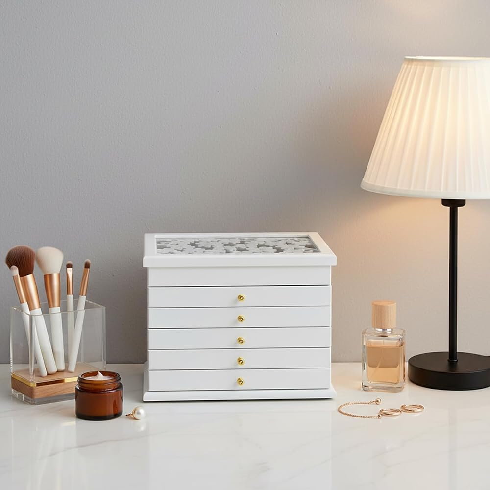 • Customizable & Modular Design for Your Unique Collection: Enjoy unparalleled flexibility! All drawers are freely assembled and removable. You can rearrange the six tiers to prioritize your most-used items or adapt the layout as your jewelry collection grows and changes over time, creating a truly personalized jewelry organizer