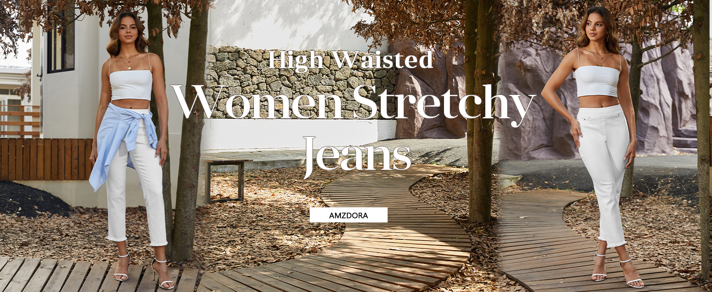 【تمدد وراحة طوال اليوم】مصنوعة من مزيج من 67% ايوسل 24.5% قطن 7% بوليستر 1.5% سباندكس، سراويل AMZDORA للتحكم في البطن للسيدات تمنحك شعورًا أخف وأكثر نعومة ومرونة من الجينز النسائي التقليدي. يمنحك الدنيم المطاطي ملاءمة مثالية تساعدك على التحرك مجانًا للارتداء في المكتب طوال اليوم أو في عطلة نهاية الأسبوع.
