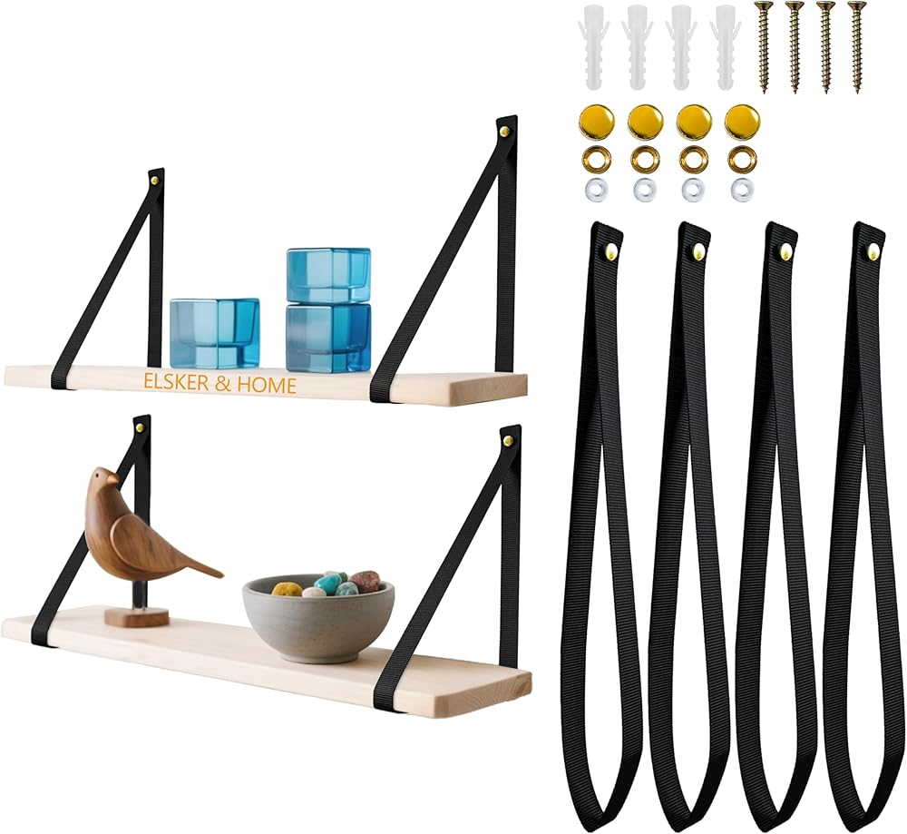 أشرطة منسوجة للتعليق على الحائط من ELSKER&HOME، رف معلق، أرفف عائمة من الخشب على الحائط، منظم أرجوحة لغرفة النوم، وغرفة المعيشة، والحمام، والنوم، عبوة سوداء من قطعتين (بدون خشب) in Kuwait